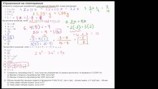 В этом видео рассматривается ряд заданий на вычисление выражений с переменными. Это видео - русская версия видео «Examples of evaluating ...