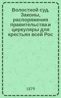 Волостной суд : Времен. правила о волост. суде в местностях, в которых введено положение о зем. участковых начальниках : Тез. решений Правительствующего сената : Извлеч. из Устава о наказаниях, налагаемых мировыми судьями, с кассац. практикой Правительств. сената. Суд третейский : Руководство для председательствующих волостного суда, волостных судей, волостных писарей и тяжущихся