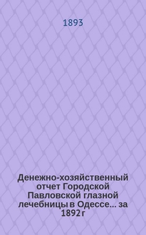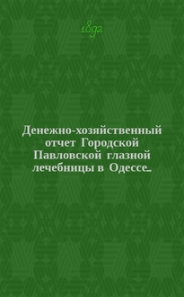Денежно-хозяйственный отчет Городской Павловской глазной лечебницы в Одессе.... за 1891 г.:. - 1892. - 23 с