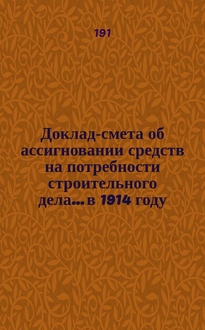 Доклад-смета об ассигновании средств на потребности строительного дела.... в 1915 году:. - [191-]. - 41 с. - (... ; 50-го очередного созыва)