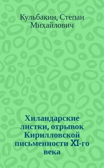 Кульбакин С.М. ... Хиландарские листки, отрывок Кирилловской письменности XI-го века / С.М. Кульбакин. - Санкт-Петербург : Отд-ние рус. яз. и словесности Имп. Акад. наук, 1898. - [2], 34, [1] с., 2 л. табл. ; 25 см