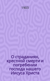 Федотов Ф.Ф. О страданиях, смерти и погребении Господа нашего Иисуса Христа : Сост. для религиозно-нравств. чтения Ф. Федотов. - 5-е изд. - Санкт-Петербург : тип. т-ва "Обществ. польза", 1902. - 47 с. ; 24 см