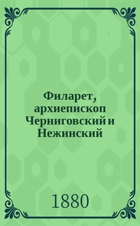 Смирнов А.А. Филарет, архиепископ Тверской, Ярославский и Московский : (1819-1826 г.г.) / [Соч.] Прот. Александра Смирнова. - Москва : печ. А.И. Снегиревой, 1896. - VI, 79 с. ; 23 см