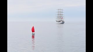 Посмотрите, как всё таки красиво, когда, пусть и не паруса, но мачты парусного судна проплывают над Севастопольской бухтой. Нет, парус в клипе ...