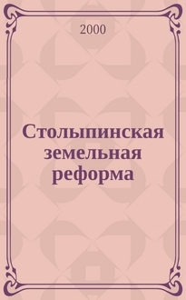 Прилуцкая О. А. Столыпинская аграрная реформа в Среднем Поволжье в 1906-1917 гг.: (По материалам Пенз., Самар., Симбир. губергний) : Автореф. дис. на соиск. учен. степ. к.ист.н. : Спец. 07.00.02 / Прилуцкая Ольга Александровна; [Пенз. гос. пед. ун-т им. В. Г. Белинского]. - Пенза, 2003. - 24 с. ; 21 см. - Библиогр.: с. 24 (4 назв.) и в подстроч. прим.