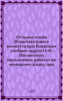 Отзывы профессора Университета св. Владимира Т.Д. Флоринского о письменных ответах по русскому языку лиц, подвергшихся испытанию зрелости в гимназиях и окончательным испытаниям в реальных училищах Киевского учебного округа... ... в 1907 году