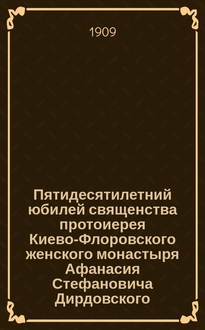 Беляновский А.А. Пятидесятилетний юбилей священства протоиерея Киево-Флоровского женского монастыря Афанасия Стефановича Дирдовского / [... прот. А. Беляновский]. - Киев : тип. Имп. ун-та св. Владимира АО печ. и изд. дела Н.Т. Корчак-Новицкого, 1909. - [2], 30 с. ; 24 см