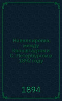 Витрам Ф.Ф. Нивеллировка 1907 г. между Балтийским, Варшавским, Царскосельским и Николаевским вокзалами в С.-Петербурге и определение падения Обводного канала / [Соч.] Ф.Ф. Витрама. - [Санкт-Петербург] : тип. М-ва пут. сообщ. (т-во И.Н. Кушнерев и К°), [1909]. - 12 с., 9 л. ил. ; 26 см