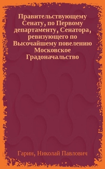 Гарин Н. П. Правительствующему Сенату, по Первому департаменту, Сенатора, ревизующего по Высочайшему повелению Московское Градоначальство, доношение : 13 ноября 1908 г. № 364 / [сенатор Гарин]. - [Санктпетербург] : Сенатская типография, [1909]. - [2], 156 с. ; 36 см Список литературы для реферата