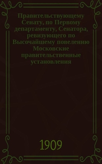Приложения к доношению Сенатора, ревизующего по Высочайшему повелению Московское Градоначальство, в Правительствующий Сенат, от Ноября 1908 г. за № 364 ; Санктпетербург : Сенатская типография, 1910