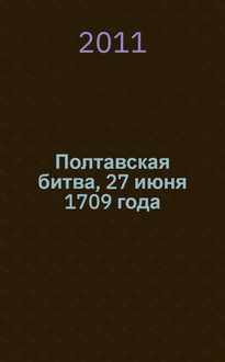 Иванов Н.А. Полтавская победа : Дву-столетие знаменитого дня 27 июня 1709-1909 : Описание и "Изображения преславной баталии между войск российских и свейских в присутствии высокой команды над войсками его царского величества всероссийского Петра Первого, над свейским его королевского величества Карла XII, учинившейся неподалеку от Полтавы июния в 27-й день 1709 г." / [Н. Иванов]. - Одесса : Газ. "Рус. речь", 1909. - 12 с. : ил. ; 46 см