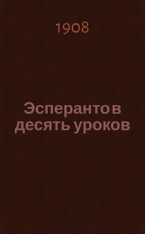 Кар Т., Панье М. ... Эсперанто в десять уроков : (Самоучитель яз. эсперанто) / Т. Кар и М. Панье; Пер. с фр. яз. и доп., применительно к рус. Б. Тиличеев Под ред. А.А. Сахарова. - Москва : кн. маг. "Эсперанто", 1909. - 78, [1] с. ; 18 см