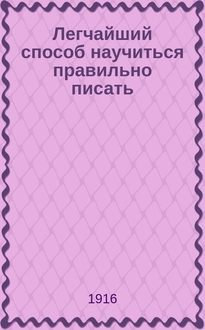 Сипачев П.А., Белоцветова Е.Г. Легчайший способ научиться правильно писать : Новейший зрит. сист. диктант : [Полный курс] : Результаты опытов проф. Лайя / На основании эксперим. психологии сост. П. Сипачев и Е. Белоцветова. - 3-е изд., (испр. со 2-го без изм.). - Киев : типо-лит. Штаба Киев. воен. окр., 1909. - [2], 192 с. ; 22 см