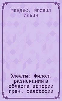 Мандес М.И. Элеаты : Филол. разыскания в области истории греч. философии / М.И. Мандес. - Одесса : тип. "Техник", 1911. - [6], 316 с. ; 25 см. - (Записки Новороссийского университета Историко-филологического факультета / Изд. под ред. проф. А.П. Доброклонского ; Вып. 4). - Библиогр. в примеч. Поиск автора для реферата