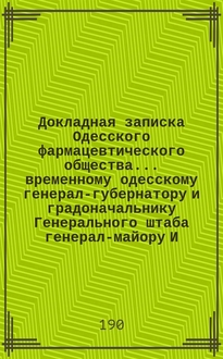 Одесское о-во трактиросодержателей, торгующих крепкими напитками. Докладная записка господам членам Государственного совета по вопросу о торговле крепкими напитками в заведениях трактирного промысла в воскресные, праздничные и предпраздничные дни, на основании одобренного Государственной думой законопроекта об изменении и дополнении некоторых статей Устава об акцизных сборах : (Законопроект о мерах борьбы с пьянством) / О-во трактиросодержателей, торгующих крепкими напитками в гор. Одессе. - Одесса : тип. Главацкого, 1913. - 8 с. ; 27 см