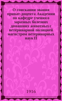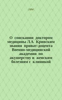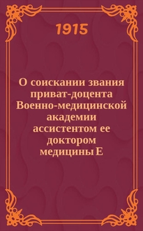 О соискании звания приват-доцента Военно-медицинской академии по кафедре академической терапевтической клиники доктором медицины В.И. Глинчиковым. - [Петроград] : тип. М. Меркушева, [1915]. - 27 с. ; 25 см