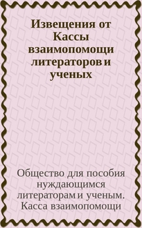 Извещения от Кассы взаимопомощи литераторов и ученых : Г. 1-16