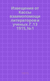 Общество для пособия нуждающимся литераторам и ученым. Извещения от Кассы взаимопомощи литераторов и ученых : Г. [1]-16. - Санкт-Петербург, 1901-1908, 1911-1918