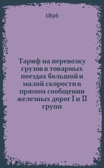 Тариф на перевозку грузов в прямом сообщении со станции Рига Риго-Динабургской железной дороги на станцию Царицын Грязе-Царицынской железной дороги : Действителен с 10 июля 1882 г. по 1-е мая 1883 г