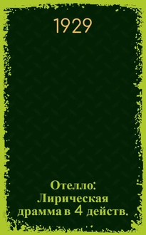 Шекспир У., Уильям Отелло = (Otello) : Трагедия в 5 актах В. Шекспира : [Краткое либретто] : [Излож. содерж.]. - Санкт-Петербург : В.К. Травский, 1893. - 15 с. ; 20 см. - (Драматический репертуар Джиованни Эмануэль)
