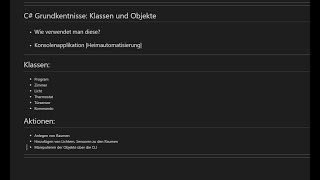 In diesem Video beschreibe ich die Verwendung von Klassen und Objekten in einer objektorientierten Sprache. In diesem Fall C# .Net. Ich gehe nicht darauf ein ...
