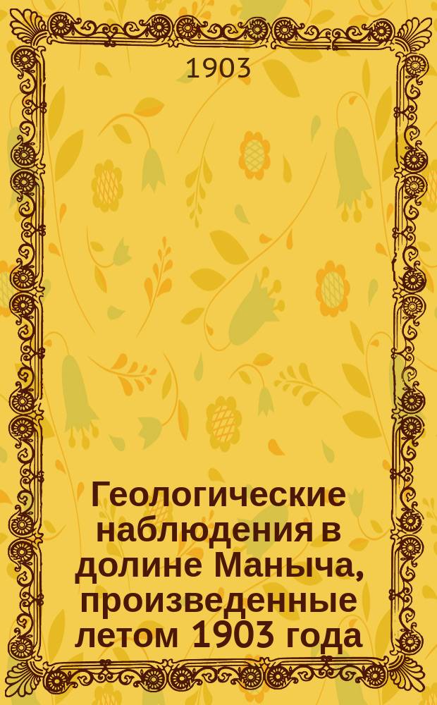 ... Геологические наблюдения в долине Маныча, произведенные летом 1903 года
