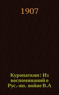 Куропаткин и его помощники : поучения и выводы из Русско-Японской войны / сост. бар. фон-Теттау, состоявший во время войны при рус. армии; с нем. пер. [и снабдил предисл.] М. Грулев. Ч. 1: , От Геок-Тепе до Ляояна. - 1913. - XVI, 372 с. - (... ; вып. 30). - Библиогр.: с. III