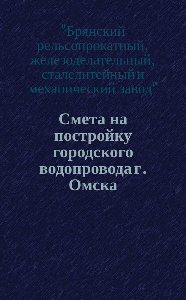 "Брянский рельсопрокатный, железоделательный, сталелитейный и механический завод", акционерное общество. Смета на постройку городского водопровода г. Омска / Сост. О-вом Брянского завода. - [Омск, 1911]. - 22 с. ; 26 см