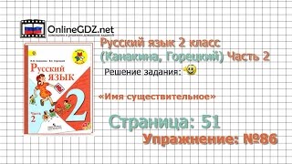 Страница 51 Упражнение 86 «Имя существительное» - Русский язык 2 класс (Канакина, Горецкий) Часть 2