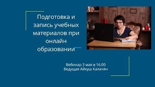 Вебинар "Подготовка и запись учебных материалов при онлайн образовании"