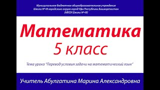 Математика 5 класс. Перевод условия задачи на математический язык.