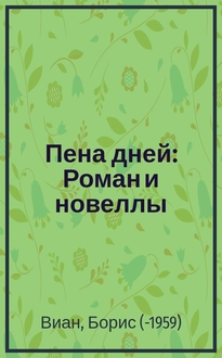 Виан Б. Пена дней : [Сборник : Перевод] / Борис Виан; [Худож. Покатов В.В.]. - М. : Иной мир, Б. г. (1992). - 350, [1] с. : ил. ; 21 см