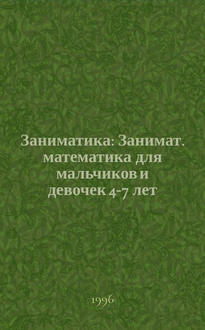 Юдин Г.Н. Заниматика : Занимат. математика для мальчиков и девочек 4-7 лет / Написал и нарисовал Георгий Юдин. - М. : Росмэн, Б. г. (1995). - 125, [2] с. : ил. ; 27 см