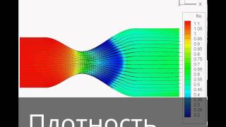 Показывается эволюция поля скорости при формировании стационарного сверхзвукового течения в трубе.