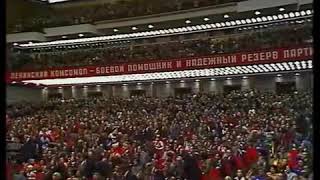 Фильм о 18-ом съезде ВЛКСМ. Обзорный фильм к 60-летию ВЛКСМ. Зал заседания XVIII съезда ВЛКСМ в Кремлевском Дворце съездов. Выступают: Л.