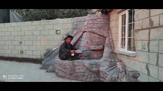 Оформление старого дворика в Турции, фонтан в виде скалы из арт бетона, мастер Фархат. из Туркмении.
