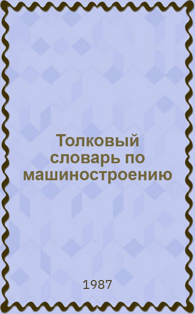 Захаров Б.В., Киреев В.С., Юдин Д.Л. Толковый словарь по машиностроению : Основные термины : Ок. 5000 терминов / Б.В. Захаров, В.С. Киреев, Д.Л. Юдин; Под ред. А.М. Дальского. - М. : Рус. яз., 1987. - 301, [1] с. ; 17 см
