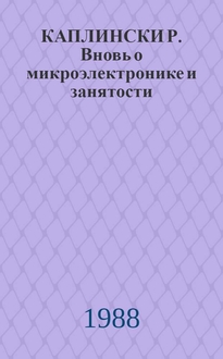 КАПЛИНСКИ Р. Вновь о микроэлектронике и занятости. - М. : ИНИОН, 1988. - 15 с. ; 28 см. - (Реферат / АН СССР, ИНИОН ; № 1936)