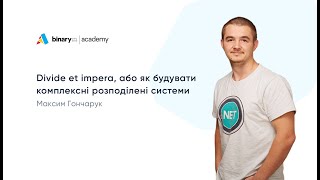 Максим Гончарук, .Net Tech Lead Binary Studio та коуч Binary Studio Academy, знайомить слухачів з особливостями створення розподілених систем.