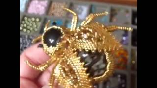 Золотой жук брошь из драгоценного бисера и бусин