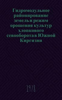 Капашев А.Х. Гидромодульное районирование орошаемых земель предгорной зоны Заилийского Алатау и бассейна р. Или в Казахстане : Автореф. дис. на соиск. учен. степ. канд. с.-х наук : (06.01.02) / ВНИИ хлопководства. - Ташкент, 1986. - 20 с. : схем. - Библиогр.: с. 19-20 (10 назв.)