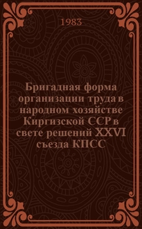 Бригадная форма организации и стимулирования труда на Тойтепинском заводе металлоконструкций имени 40-летия Узбекистана / [Забышная Ю.А. и др.]. - Ташкент : УзНИИНТИ, 1985. - 23 с. ; 20 см. - (Экспресс-информация / Гос. ком. УзССР по труду и др.)