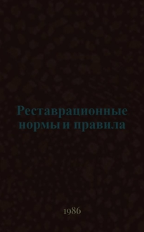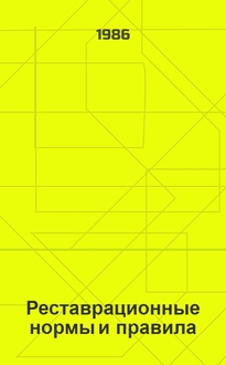 Реставрационные нормы и правила : Сб. смет. норм и единич. расценок на реставрац. восстановит. работы по памятникам истории и культуры г. Москвы : [Утв. М-вом культуры СССР 20.06.84 : Взамен ССН-70 : Срок введ. в действие 01.07.84]. Разд. 23: , Воссоздание и реставрация тканей и шпалер : [Взамен ССН-70 : Срок введ. в действие 01.07.84] : МК СССР, 1984. - 34 с