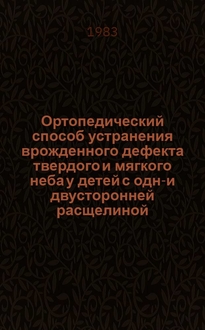 Ортопедический способ устранения врожденного дефекта твердого и мягкого неба у детей с одно- и двусторонней расщелиной : Метод. рекомендации / Перм. гос. мед. ин-т, Перм. обл. отд. здравоохранения; [Сост. Т.В. Шарова, Е.Ю. Симановская]. - Пермь : Б. и., 1983. - 24 с. : ил. ; 21 см Купить в OZON