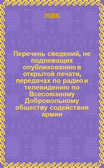 Перечень профессий и должностей, имеющих военно-прикладное значение, по которым осуществляется обучение кадров в организациях ДОСААФ СССР / ...ЦК. - М. : Б. и., 1983. - [1], 2, 10 с. ; 20 см