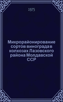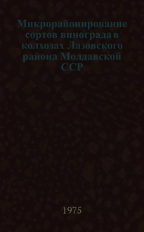 Микрорайонирование сортов винограда в Молдавии. В книге говорится о микрорайонном районировании сортов. Это районирование связано не с большими территориальными расстояниями, а со свойствами сортов и условиями их возделывания.