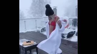 Купание в открытом бассейне зимой на природе