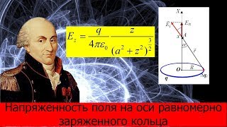 В этом видео на основе закона Кулона выводится выражение для напряженности электрического поля на оси равномерно заряженного кольца.