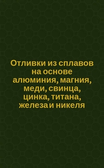 Симакова С.В. Отливки : [По состоянию на 1 июля 1980 г / Сост. С.В. Симакова]. - М. : ВНИИКИ, 1980. - 65 с. ; 21 см. - (Библиографическая информация / ВНИИКИ. Указ. отеч. нормат.-техн. документов междунар. и иностр. стандартов . Серия "Станкоинструментальная промышленность" ; Вып. 4)