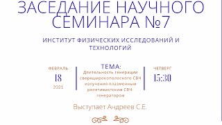 Доклады и выступления: С.Е. Андреев, МИРЭА. Длительность генерации сверхширокополосного СВЧ излучения ...